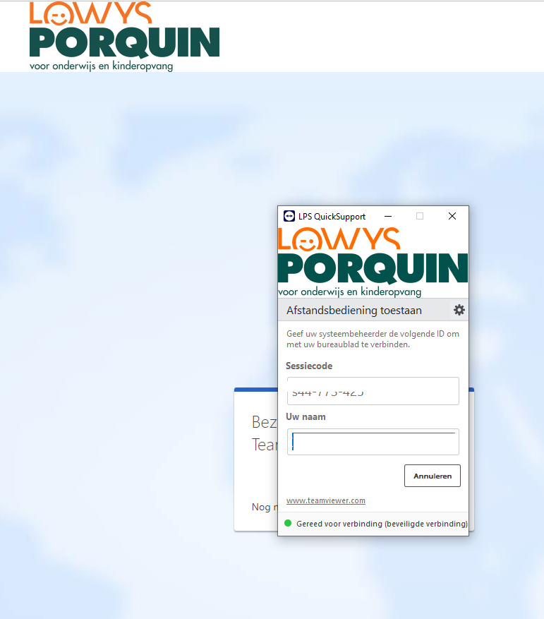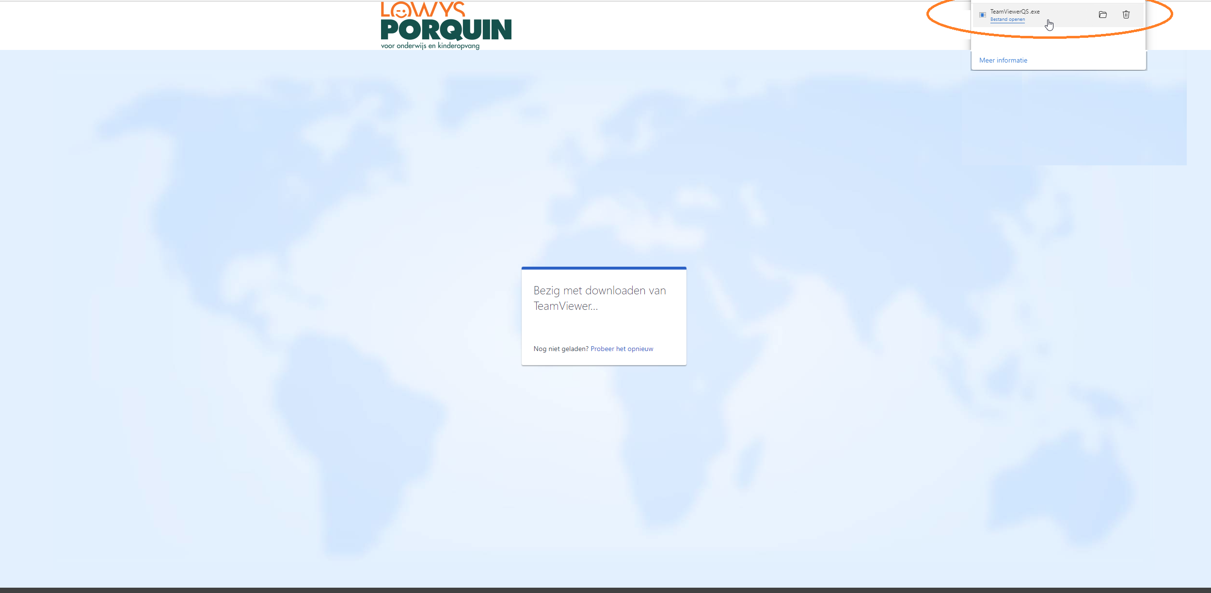 Het volgende scherm verschijnt. Klik, zodra het programma gedownload is, rechtsboven op "TeamViewerQS.exe"