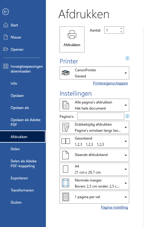 Printen gaat vanaf dan niet meer naar één specifieke printer op locatie, maar naar een cloudomgeving. Het maakt daarom niet meer uit op welke locatie je bent. Je print altijd naar de algemene CanonPrinter.