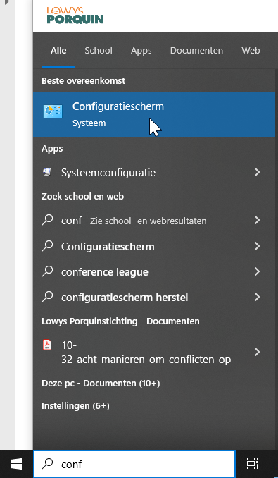 Ga naar het configuratiescherm, door via de zoekbalk "configuratiescherm" in te typen.