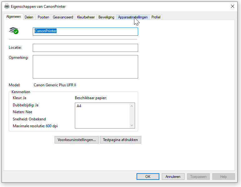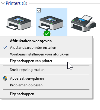Klik met de rechtermuisknop op "CanonPrinter" en vervolgens op "Eigenschappen van printer"